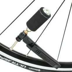 Der CO2 Pumpenaufsatz (komplett aus Metall) ist extrem klein, nur 3 cm lang, kein Winkel und der Durchmesser ist nur ca. 1,4 cm. Wie ist das möglich? Ganz einfach: herkömmliche CO2 Pumpenaufsätze brauchen eine Kunststoff-Ummantelung, da man sie direkt mit den Fingern anfassen muss beim Pumpen. Dabei können durch die Kälte „Verbrennungen“ entstehen. Das kann hier nicht passieren, da man die Pumpe einfach am Reifenheber anfasst, man hat also einen Griff.