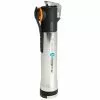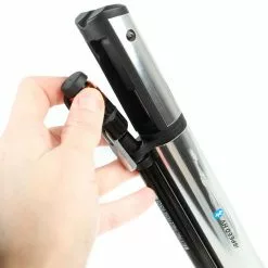 Diese Pumpe muss nicht am Ventil gehalten werden, sondern wird mit einem Hebel einfach an das Ventil angebracht. Das ermöglicht einfacheres pumpen und es geht keine Luft am Ventil vorbei.