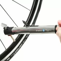 Diese Pumpe muss nicht am Ventil gehalten werden, sondern wird mit einem Hebel einfach an das Ventil angebracht. Das ermöglicht einfacheres pumpen und es geht keine Luft am Ventil vorbei.