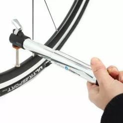 Diese Pumpe muss nicht am Ventil gehalten werden, sondern wird mit einem Hebel einfach an das Ventil angebracht. Das ermöglicht einfacheres pumpen und es geht keine Luft am Ventil vorbei.