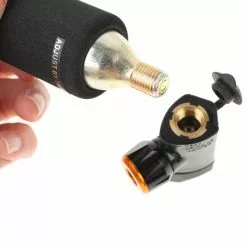 Airace baut extrem gut zu bedienende und sichere Ventil-Köpfe, Ihr kennt diese vielleicht schon von den Stand- und Handpumpen. Auch die kleine CO2-Pumpe profitiert von der langjährigen Erfahrung von Airace. Der Ventilkopf passt für Autoventile (Schrader) und Rennradventile (Presta), ohne das man etwas umschrauben muss. Es entweicht keine Luft beim Pumpen. Das gibt die Sicherheit, dass man auch das Maximum aus seiner CO2 Kartusche herausholen kann.