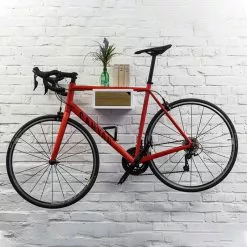 Die optisch sehr ansprechenden Wandhalterungen von BicycleDudes, ermöglichen eine platzsparende Unterbringung deines Rades in der Wohnung, Garage oder im Keller. Besonders praktisch ist, dass es nicht nur eine Halterung ist, sondern auch gleichzeitig Stauraum bzw. Platz für Dekoration bietet.
