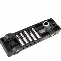 Mitgeliefert werden fünf Bits in den gebräuchlichsten Größen und im Gehäuse verbirgt sich ein Reifenheber mit Speichenhaken und Ventilöffner.