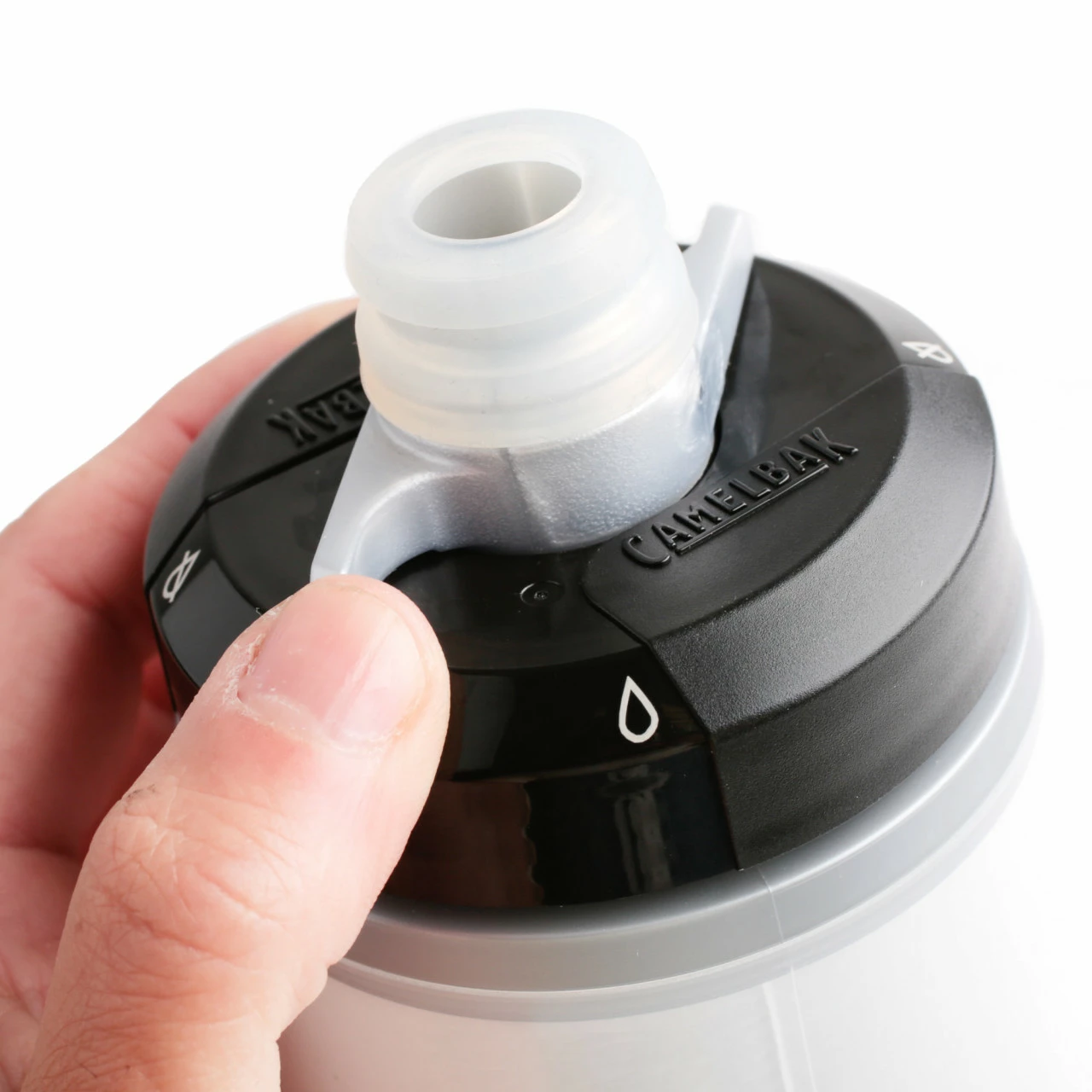 CAMELBAK Trutaste verspricht dabei unverfälschten Geschmack dank BPA-/ BPS-/ BPF-freier Produktion. Wenn du unterwegs bist, sichert die Lock-Out-Funktion einen tropffreien Transport – also hast du keine Sorge mehr, dass dein Getränk auslaufen könnte. Während der Tour übernimmt dann das selbstschließende Ventil diese Funktion. Der Deckel ist mehrteilig und abnehmbar, dadurch ist die Reinigung nach der Tour ganz einfach.