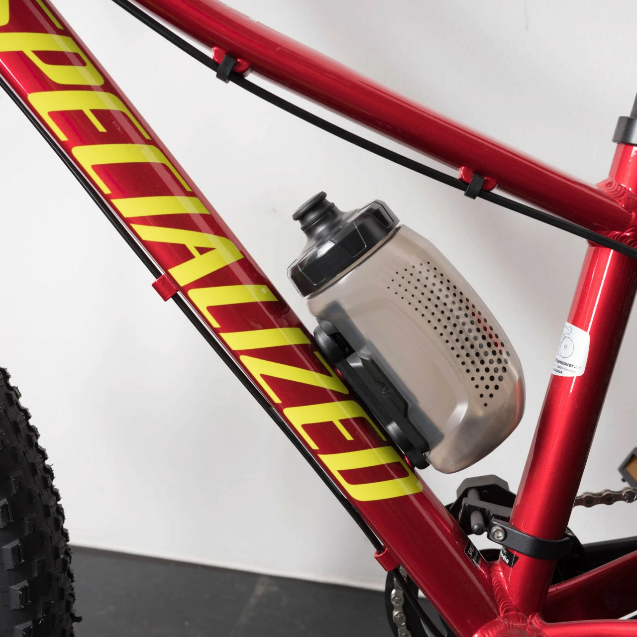 Die neue 450 ml Flasche ist ideal für alle Fahrradrahmen, die zu wenig Platz für eine normale Flasche haben. Die kleine Flasche funktioniert genauso, wie die großen: einfach vor den Halter halten und sie wird automatisch per Magnet angezogen und fixiert sich am Flaschenhalter. Zum Herausnehmen einfach seitlich drehen.