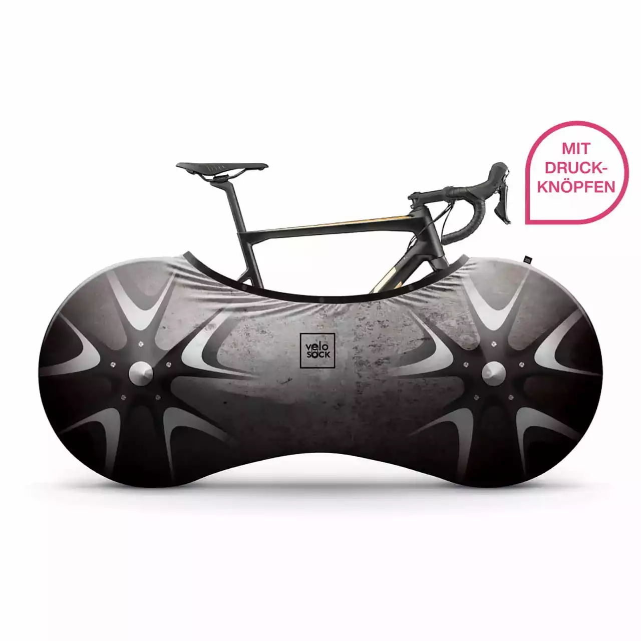 VELOSOCK Indoor-Fahrradüberzug One-Size für Erwachsenenräder – Silverbird (Schwarz-grau)