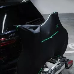 Dank des elastischen Materials und der großen Reißverschlussöffnungen ist die Anbringung im Handumdrehen erledigt. Auch die Montage an einem Fahrradträger geht wie gewohnt schnell vonstatten. Dazu müssen lediglich die seitlichen Reißverschlüsse geöffnet werden. Da sich der Überzug der Fahrradgröße anpasst, ist er für 99 % der Erwachsenenräder geeignet. Das Material ist außerdem waschmaschinenfest. D. h. der Überzug lässt sich bei 40 Grad Celsius in der Waschmaschine waschen.