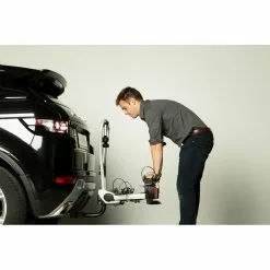 Um nicht das volle Gewicht deines e-Bikes heben zu müssen, gibt es die separat erhältliche ClickRamp. Sie wird seitlich an die Schiene des Fahrradträgers geklickt und dient dann als Rampe, über die du dein Fahrrad ganz einfach auf den Fahrradträger schieben kannst.